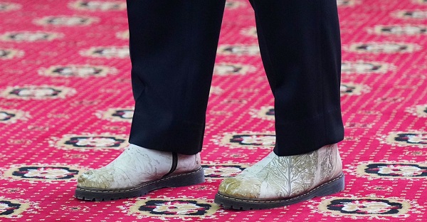 Dirinya menjelaskan, bahwa sepatu merk Dinaril yang dikenakan oleh Gubernur Andi Sudirman ini terbuat dari kulit domba dengan cetakan daun disekitarannya.
