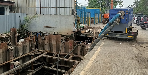 “Jalan Pakuwon sejak puluhan tahun lalu tidak pernah ada genangan air ataupun banjir. Semenjak proyek itu berjalan aktivitas warga disini jadi terganggu, kita sudah sediakan pompa tapi masih belum teratasi,” ungkapnya.