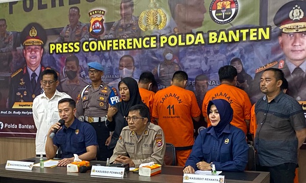 MITRAPOL.com, Serang – Ditreskrimum Polda Banten melaksanakan press confrence ungkap kasus tindak pidana perdagangan orang di Aula Bidhumas Polda Banten pada, Selasa (21/02)