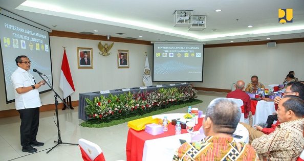 Auditor Utama Keuangan Negara IV BPK RI Syamsuddin menyampaikan apreasisi kepada Kementerian PUPR atas ketepatan waktu dalam penyerahan Laporan Keuangan Tahun 2022 Unaudited.
