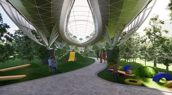 Desainnya berbentuk angka 8 disertai konsep elevated atau layang. Dengan begitu, saat joging masyarakat akan menikmati Kota Makassar dari ketinggian.