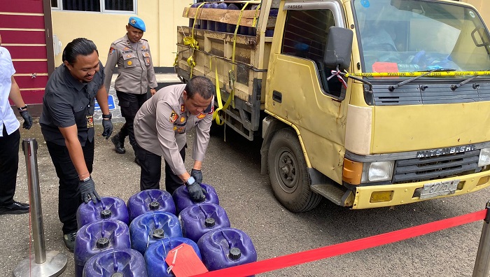 “Dari pengungkapan kasus tersebut kami berhasil mengamankan Pelaku AL(26) Warga Kecamatan Lebak Gedong dan dari tangan Pelaku, penyidik berhasil mengamankan 1 unit kendaraan truk engkel mitsubishi warna kuning No. Pol. F-8775-UH yang mengangkut 110 jerigen (ukuran 35 liter) yang semua jerigennya berisi BBM pertalite (total BBM pertalite yang diangkut 3 ton 850 liter) berikut kunci kontaknya dan 1 unit handphone yang digunakan tersangka untuk komunikasi,”