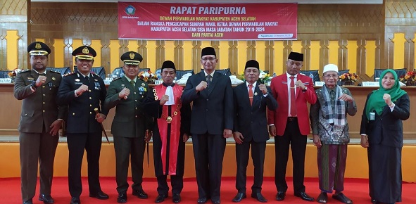 Bupati Aceh Selatan mengatakan, rapat paripurna DPRK Aceh Selatan dalam rangka pengucapan sumpah Wakil Ketua DPRK Aceh Selatan sisa jabatan Tahun 2019-2024 dari Partai Aceh atas nama Lisa Elfirasman. St.