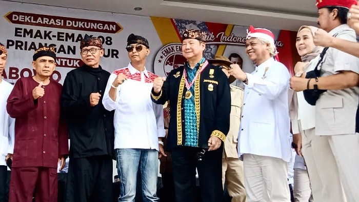MITRAPOL.com, Tasikmalaya Jabar – Dalam rangkaian acara Deklarasi Emak-Emak 08 Prabowo for Presiden se-Priangan Timur, Hashim Djoyohadikusumo didaulat sebagai Adiluhung Putra Sunda Utama oleh Forum Sunda Sabuana sekaligus diberi anugerah penghargaan sebagai Pelestari dan Penyelamat Sejarah dan Budaya Indonesia oleh Yayasan Lintas Budaya Nusantara mitra Prawiro Indonesia Garuda Merah Putih, di Komplek Gedung Buapati Kabupaten Tasikmalaya Jawa Barat, Jumat (10/6/2023)
