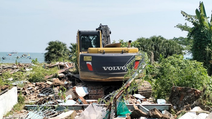 Personil gabungan juga ajan membersihkan puing-puing dari bangunan yang telah dirobohkan oleh pemilik bangunan secara mandiri. Kurang lebih bangunan sembilan bangunan sudah di rapikan.