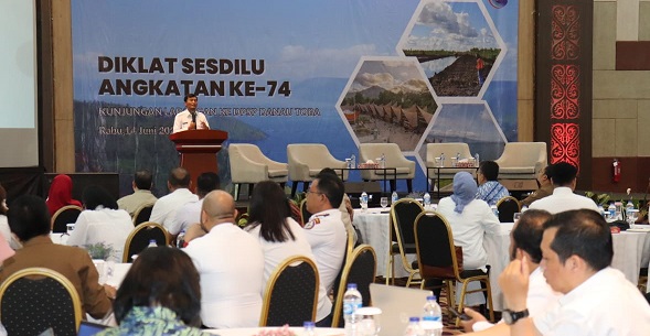 MITRAPOL.com, Toba – Wakil Bupati Toba Tonny M. Simanjuntak memaparkan satu persatu potensi yang ada di Kabupaten Toba saat menghadiri kegiatan Pendidikan dan Latihan (Diklat) Sekolah Staf Dinas Luar Negeri (Sesdilu) Angkatan ke-74 Kementerian Luar Negeri (Kemenlu) di Ballroom Labersa Hotel, Balige, Kabupaten Toba, Rabu (14/6/2023).