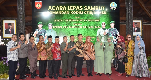 “Selamat bertugas di tempat yang baru pak Pribadi beserta ibu, dan selamat bergabung di Kabupaten Demak pak Dandim beserta ibu. Semoga kita semua dapat bekerjasama dan bersinergi membangun Kabupaten Demak menjadi lebih maju dan lebih baik,” tutupnya.