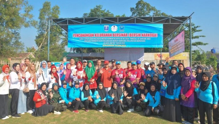 “Pencanangan Kelurahan Bersinar (Bersih Narkoba) Banjarsari dan Rejomulyo dalam rangka pencegahan penyalah pemberantasan pengunaan dan peredaran gelap narkotika (P4GN) di Kota Metro Tahun 2023 hari Minggu 18 Juni 2023 bertempat di Banjarsari secara resmi diresmikan,” ucap Bangkit.