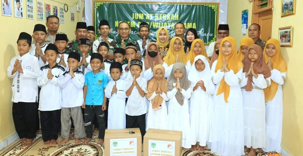 Santunan anak yatim Korem 052/Wkr oleh Ketua Persit Koorcab Rem 052 PD Jaya Ibu Henny Setiastuti di hadiri 70 Orang selaku penanggung jawab kegiatan Kapten Inf Ali Maskuri S.E (Danramil 05/Blj)