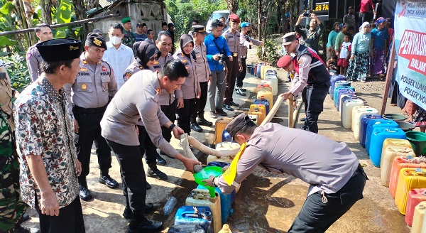 Polri Peduli, Kapolres Pasuruan Bagikan Air Bersih Dan Paket Sembako Ke Warga Yang Kurang Mampu