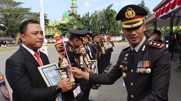 Setelah selesainya Upacara, Kapolres Pasuruan memberikan Piagam Penghargaan dan Trophy sebagai simbolis kepada para Pemenang Lomba di dalam rangkaian Hari Bhayangkara Ke-77 sebagai bentuk Apresiasi karena telah memeriahkan Rangkaian Hari Bhayangkara Ke-77 di Polres Pasuruan.