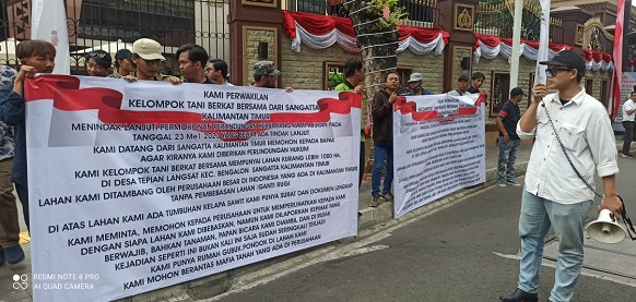 Kedatangan kelompok Tani ini adalah menuntut agar Mafia tanah yang ada di Kutai Timur untuk ditangkap karena meresahkan petani yang ada di Desa itu.