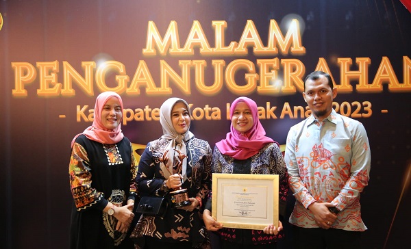 Usai menerima penghargaan, Fatmawati Rusdi berterima kasih dan memberikan apresiasi kepada seluruh stakeholder yang telah bekerja keras untuk meraih predikat Kota Layak Anak.