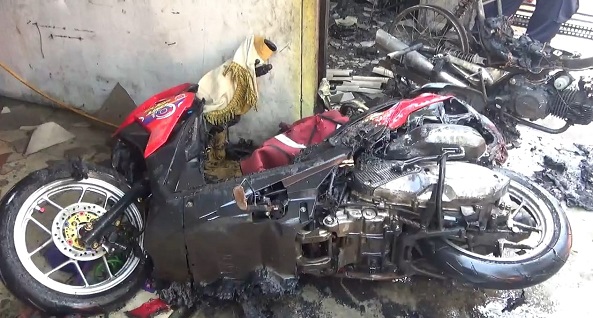 Ia mengaku sudah melakukan pendataan di lokasi, bahwa yang terbakar itu sebuah bengkel dan warung, kemudian tiga unit motor, dan pemilik bengkel dibawa ke RS Palabuhanratu karena mengalami luka bakar.