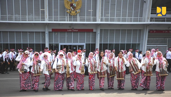 Menteri PUPR Basuki Hadimuljono yang hadir melepas keberangkatan tim angklung Kementerian PUPR turut bangga dan memberikan semangat kepada seluruh anggota tim.