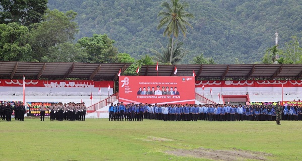 Adapun Pelaksanaan Upacara HUT ke 78 Kemerdekaan RI di Kabupaten Aceh Selatan ini berlangsung di Lapangan Naga Tapaktuan, Kamis (17/08/2023)