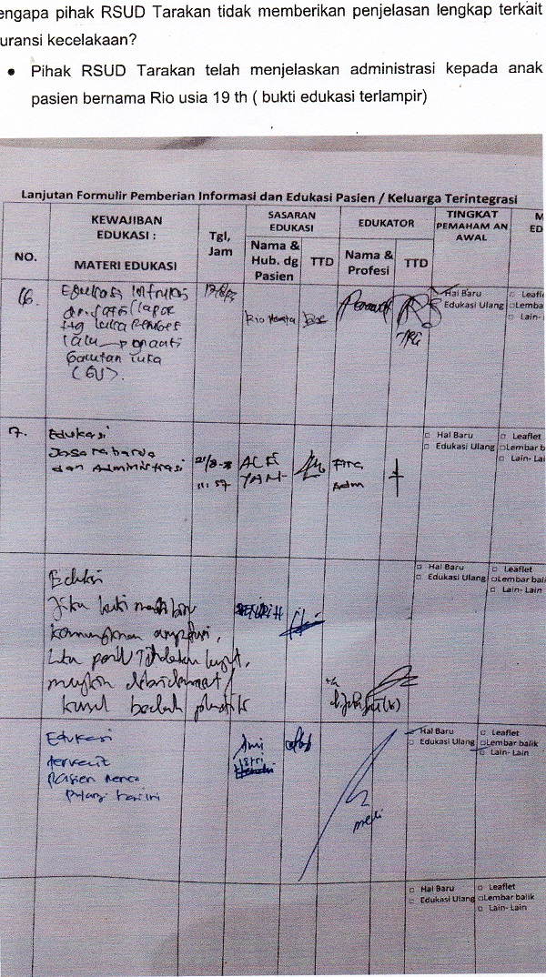 Sementara, hingga berita ini ditayangkan, Pihak RSUD Tarakan belum dapat memberikan jawaban meskipun sudah dikonfirmasi melalui ruang Informasi serta penulisan dalam agenda konfirmasi yang diberikan dengan konsep kertas pertanyaan dari pihaknya sendiri.