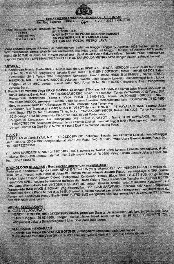 MITRAPOL.com, Jakarta – Kecelakaan lalu lintas yang terjadi beberapa waktu lalu antara pengendara Sepeda Motor dengan Bus TransJakarta Reguler, yang diduga milik Perusahaan Mayasari Bakti menimbulkan pertanyaan dari pihak keluarga Korban
