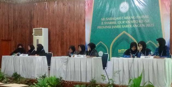 MITRAPOL.com, Sarolangun – Hari ketiga pelaksanaan MTQ ke-52 tingkat Provinsi Jambi sudah memasuki babak semifinal pada setiap cabang lomba. Awak media Mitrapol sempat memantau 2 cabang lomba, yaitu Semi Final KTIQ (Karya Tulis Ilmiah Al-Qur’an) yang digelar sekretariat DPRD Sarolangun dengan 12 peserta dan Semi Final Fahmil Qur’an di Aula Bappeda Sarolangun, diikuti 12 regu, 6 regu Putri dan 6 regu Putra, Sabtu 26 Agustus 2023.