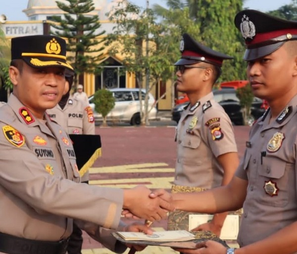 MITRAPOL.com, Lebak Banten – Kapolres Lebak Polda Banten AKBP Suyono, SIK memberikan penghargaan Best Police Of The Month Tingkat Polres Lebak Periode Bulan Maret 2023 di Lapangan Mapolres Lebak. Senin (28/8/2023).