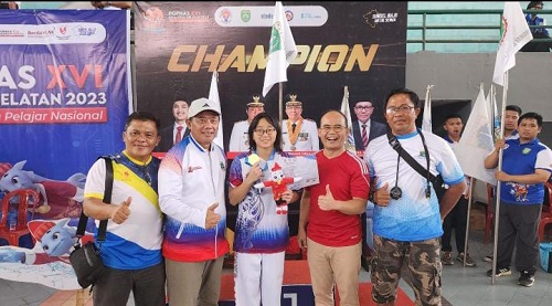 MITRAPOL.com, Sumsel – Ketua Komisi V DPRD Provinsi Banten Yeremia Mendrofa berkesempatan langsung mengalungi para atlet yang memperoleh medali pada Cabang Olahraga (Cabor) Renang pada nomor pertandingan 200 Meter Gaya Kupu-kupu Putri di Pekan Olahraga Pelajar Nasional (POPNAS) XVI Sumatera Selatan Tahun 2023 di Palembang.