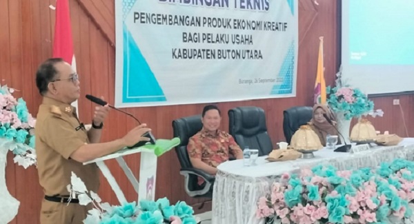 MITRAPOL.com, Buton Utara – Sekretaris Daerah (Sekda) Kabupaten Buton Utara (Butur) Muhammad Hardhy Muslim, SH., MH., membuka dengan resmi Bimbingan Teknis Pengembangan Produk Ekonomi Kreatif bagi pelaku Usaha Mikro, Kecil dan Menengah (UMKM),