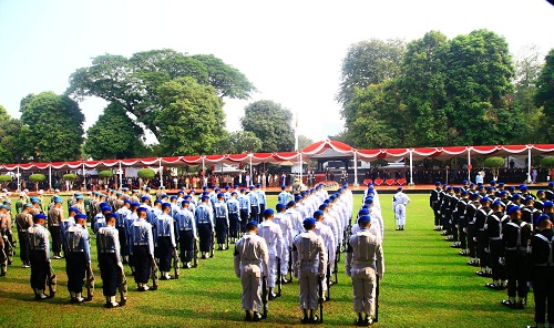 1 Kompi gabungan Korp Satsik, 1 kompi pasukan gabungan Protokol TNI AD, AL,AU dan Polri, 1 Kompi gabungan polisi militer dan Propam Polri, 1 Kompi Wanita TNI dan Polwan, Gabungan Pelajar SMA, SMP dan SD serta Paskibraka.