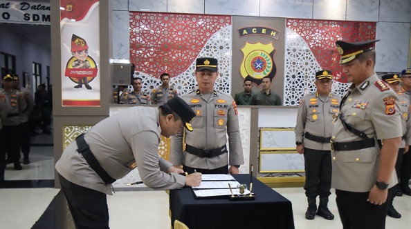 MITRAPOL.com, Banda Aceh — Kapolda Aceh Irjen Achmad Kartiko menyerahkan jabatan Wakapolda kepada Kombes Armia Fahmi dalam upacara di lobi Mapolda Aceh, Senin, 9 Oktober 2023. Sebelumnya, jabatan tersebut sempat kosong semenjak Brigjen Syamsul Bahri memasuki masa purna tugas atau pensiun.
