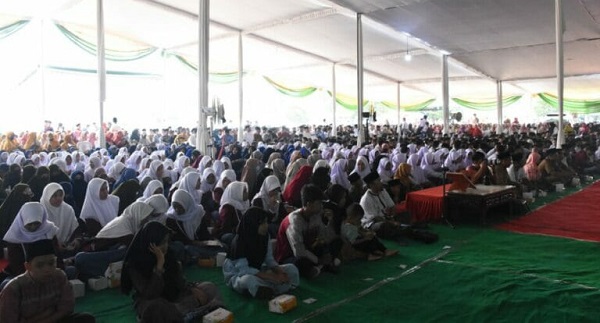 Kemudian acara dilanjutkan pemberian bantuan oleh Gubernur Lampung kepada anak yatim piatu dan juga bantuan hibah Masjid senilai 5 juta dan Mushola sebesar 10 juta.