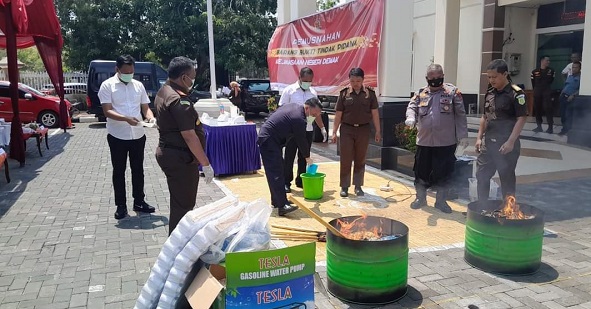 Menurut Kasi Barang Bukti, Dwi Aprilia Wisudowati Santoso, barang bukti didapatkan dari tindak pidana bulan Januari – Juli 2023.