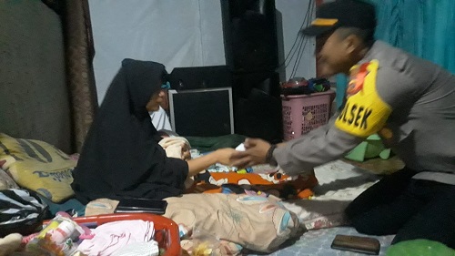 Melahirkan Pasca Longsor di Nagrak, Kapolres Sukabumi melalui Kapolsek Nagrak berikan bantuan