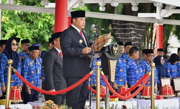 MITRAPOL.com, MAKASSAR – Penjabat Gubernur Sulsel, Bahtiar Baharuddin, memimpin upacara peringatan Hari Ulang Tahun (HUT) Korps Pegawai Republik Indonesia (Korpri), di Lapangan Upacara Rumah Jabatan Gubernur, Rabu, 29 November 2023.
