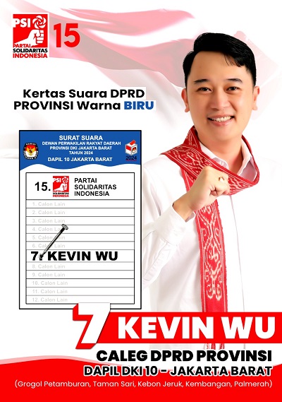 Dalam kesempatan ini Kevin Wu yang telah ditetapkan sebagai Calon Legislatif dengan No Urut 7 dengan daerah pemilihan Kecamatan Taman Sari, Gro Pet, Kebon Jeruk, Kembangan dan Kecamatan Palmerah mengajak para sobat kevin wu untuk memilihnya.
