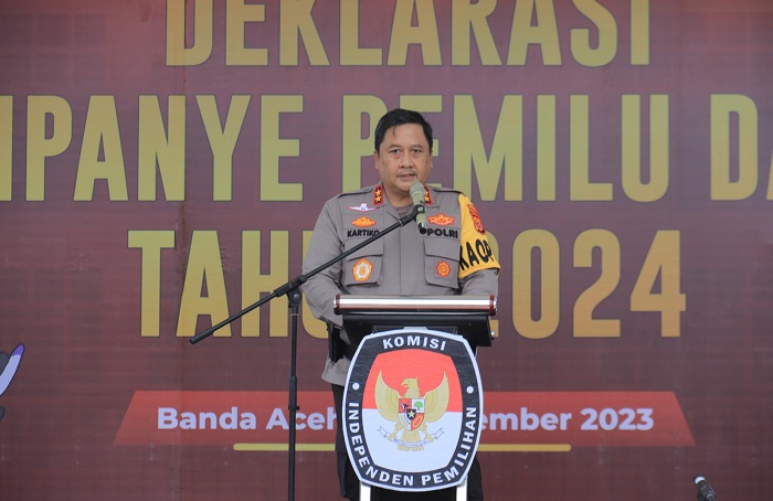 Dalam pesan damainya, Achmad Kartiko menyampaikan, selaku Kapolda Aceh, dirinya bersama dengan Forkopimda dan seluruh anggota satgas pengamanan pemilu, dengan rasa tanggung jawab dan keseriusan hadir pada deklarasi ini untuk mengingatkan tentang pentingnya menjalankan pemilu dengan aman dan damai.