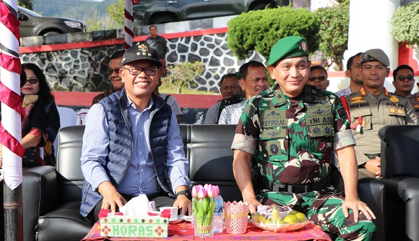 Seusai upacara, Kasdam I/Bukit Barisan, Brigjend TNI Refrizal bersama Bupati Toba, Poltak Sitorus melepas start Tonting Yudha Wastu Pramuka Jaya.