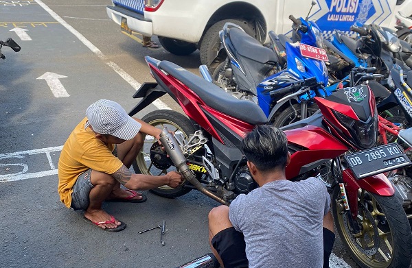 Pemilik sepeda motor yang terjaring inipun langsung dilakukan penindakan berupa Tilang serta diminta mengganti langsung dengan Knalpot Standar.