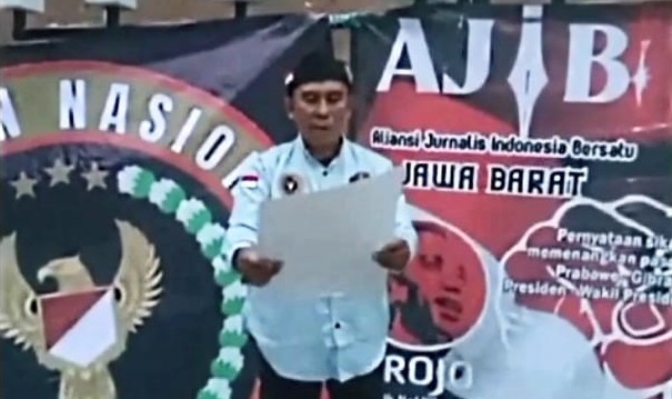 Adapun teks deklarasi Relawan Aliansi Jurnalis Indonesia Bersatu (AJIB) Jabar di IKN yang dibacakan oleh Ketua Umum AJIB Martika Edison berbunyi, Kami Keluarga Besar dan Relawan Aliansi Jurnalis Indonesia Bersatu (AJIB) Jabar Menyataan Sikap : mendukung dan siap memenangkan pasangan Prabowo Gibran Sebagai Presiden RI dan Wakil Presiden RI tahun 2024 2029 menang Sekali Putaran.