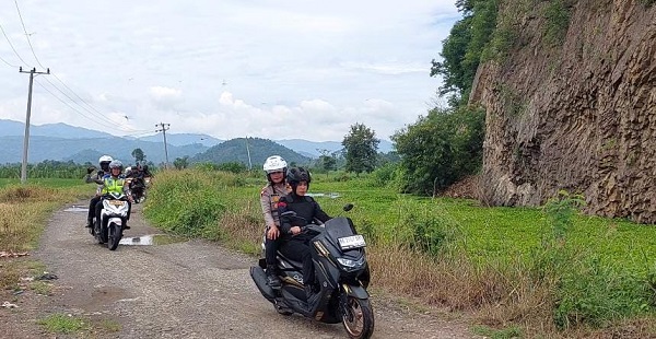 Saat Patroli Berlangsung, Kapolres Pesawaran dengan Semangat yang membara mengendarai Kendaraan Roda 2 (dua) jenis Trail menuju ke TPS yang akan dituju.