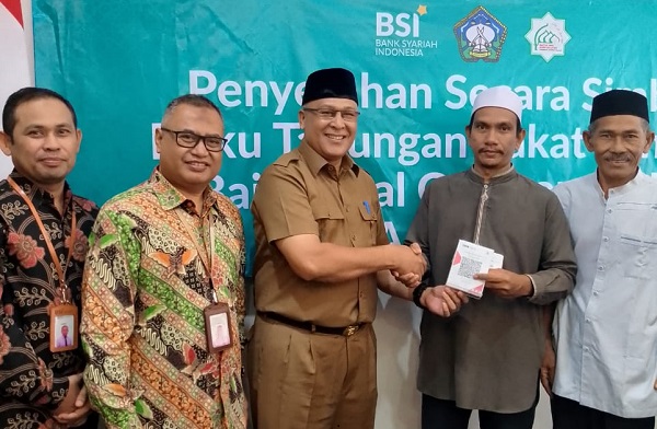 MITRAPOL.com, Aceh Selatan- PJ. Bupati Aceh Selatan Cut Syazalisma S.STP, yang diwakili oleh Asisten Satu Kamarsyah S.Sos, menghadiri acara penyerahan buku tabungan zakat dan infak Baitul Mal Gampong di Gedung Cabang BSI Tapaktuan.Senin, (25/03/2024),