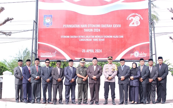 Upacara tersebut dipimpin oleh Inspektur upacara, Yuhelmi Staf Ahli Bidang Keistimewaan Aceh, Sumber Daya Manusia, dan Kerja sama, Setdakab. Diikuti oleh para Aparatur Sipil Negara (ASN) dalam unsur Forkopimda, dan para SKPK. Peringatan Hari Otonomi Daerah XXVIII mengusung tema “Otonomi Daerah Berkelanjutan Menuju Ekonomi Hijau dan Lingkungan yang Sehat”.