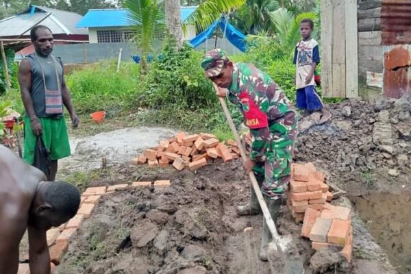 Seaperti halnya yang dilakukan oleh Babinsa Koramil 1707-04/Kimaam Kodim 1707/Merauke Sertu Datus Lobya membantu Bapak Paskalis Ucawa salah satu masyarakat Kampung Woner Distrik Kimaam Kabupaten Merauke – Papua Selatan membuat pondasi MCK miliknya di Kampung Woner.
