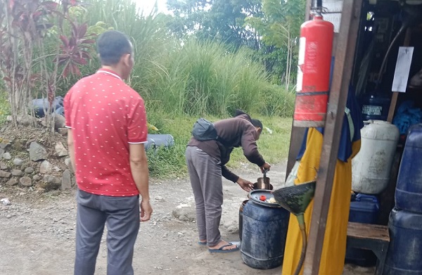 Selain itu entah itu anaknya entah saudaranya terlihat oleh awak media sedang memindahkan BBM diduga jenis solar, yang diduga kuat adalah solar subsidi, dari jerigen besar dan diliterin ke jerigen kecil untuk dijual kepada kendaraan roda empat.