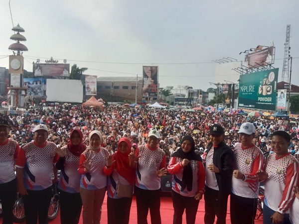 MITRAPOL.com, Bandar Lampung – Walikota Bandar Lampung Hj. Eva Dwiana hadiri jalan sehat HUT ke 342 Kota Bandar Lampung di Bunderan Gajah Tugu Adipura, Minggu, (23/06/24).