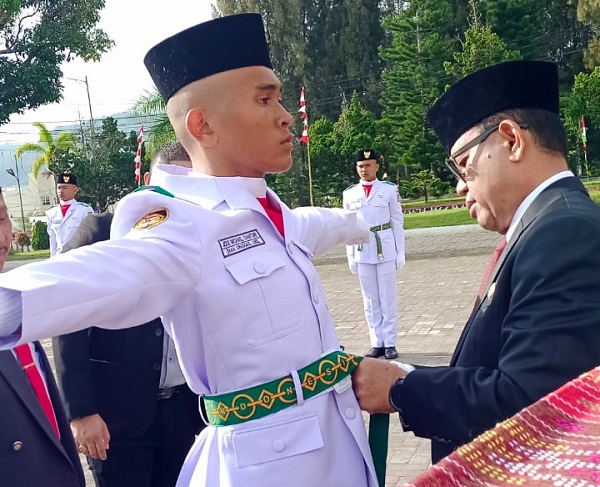 Selanjutnya Bupati Toba melakukan penyematan Tanda Pasukan Pengibar Bendera secara simbolis kepada salah seorang Paskibra disaksikan seluruh peserta Upacara Pengukuhan Paskibra, diantaranya Ketua PN Balige Makmur Pakpahan , Kapolres Toba diwakili oleh Kapolsek Balige Iptu Slamet Pasaribu, Dandim 0210 yg diwakili oleh Danramil Balige Lettu SM samosir, Sekda Augus Sitorus dan para pimpinan OPD.