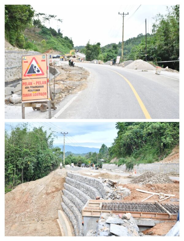 “Ya kita melakukan penanganan longsoran pada ruas jalan lintas barat dimana kondisi jalan yang terjadi longsor sudah sangat memperhatinkan, badan jalan nyaris amblas dan dikhawatirkan dapat membahayakan pengguna jalan. Maka oleh karena itu kami melakukan penanganan pada titik yang terjadi longsor, guna memperlancar kembali arus transportasi”, katanya.