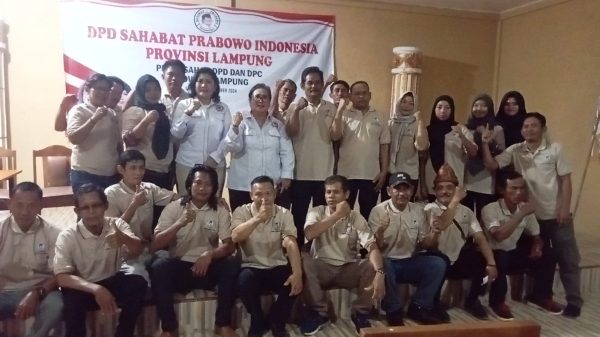 “Dengan keberadaan Sahabat Prabowo Indonesia di Provinsi Lampung ini, agar dapat bersinergi dengan stakeholder yang ada baik pemerintah, pihak swasta dan masyarakat se-Provinsi Lampung,KRN SAHABAT PRABOWO INDONESIA HADIR UTK RAKYAT,” ucapnya.