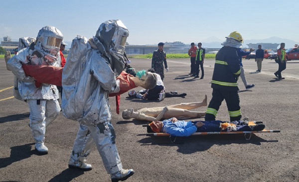 Latihan ini meliputi simulasi kecelakaan, evakuasi korban, penanganan kebakaran, serta pengendalian situasi keamanan pasca insiden yang dikendalikan oleh Satpomau dan Intel.