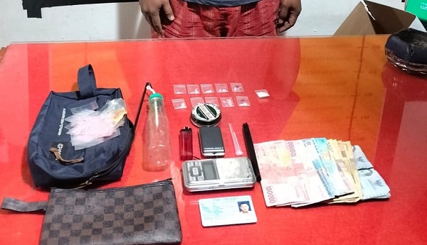 Dilanjutkannya, saat dilakukan penggeledahan didalam rumah pelaku yang disaksikan perangkat RT dan beberapa warga setempat, petugas mendapatkan didalam lemari kamar dan disela kasur tidur pelaku, sejumlah barang bukti yaitu 11 klip plastik berisi serbuk kristal diduga shabu dengan berat total 3,24 gram bruto, 2 buah timbangan digital, 2 buah sendok sabu, 1 buah alat hisap sabu atau bong, 1 buah kaleng bekas merk zambuk, 1 buah tas dompet warna coklat hitam, 1 buah tas warna biru dan uang tunai senilai 600.000 rupiah.
