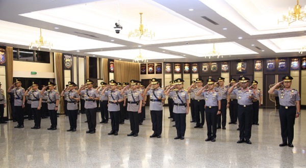 “Kapolri Jenderal Polisi Listyo Sigit Prabowo memimpin upacara pelantikan dan serah terima jabatan pejabat utama Mabes Polri Dan para Kapolda, serta upacara laporan kenaikan pangkat ke dan dalam golongan Pati Polri,” kata Kabag Penum Divisi Humas Polri Kombes Pol Erdi A Chaniago dalam keterangan tertulisnya, Sabtu (28/9/2024).