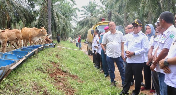 Pada Kunjungannya di PT. Nakau, Pj. Gubernur meninjau langsung metode pemeliharaan sapi yang terintegrasi dengan perkebunan sawit, dimana dengan metode ini, Sapi-sapi dilepaskan di perkebunan kelapa sawit yang telah dimodifikasi sedemikian rupa.